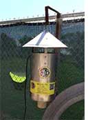 The New Jersey light trap is generally used to measure the effectiveness of mosquito control in populated areas and provides historical data of mosquito species and counts. Mosquitoes collected from these traps cannot be tested for arbovirus. This trap is usually permanently mounted and depends upon a 110-volt source of electric power that supplies an attractant light and fan. Mosquitoes attracted to the light are funneled into a collection jar. Ventura County has 20 of these traps around the county. Traps are left out permanently, and samples are collected every seven days.