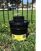 The AGO trap collects females that are looking for an oviposition site. These traps are used to monitor for invasive Aedes mosquitoes. This device is 45 centimeters tall with a 10-liter capacity to hold an attractant, such as water and decaying vegetation. The mosquitoes are captured by a nontoxic adhesive. Ventura County puts out up to 15 traps in areas to be sampled. The traps are left out for several days at a time.