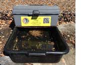 The Gravid trap attracts females by means of an oviposition medium contained in a pan below the trap. The trap operates by creating an upward current of air from within the confines of the pan so that the mosquitoes are blown into the collection bag during their preoviposition examination of the oviposition medium. Ventura County has 2 of the gravid traps, and these are set out for one night at a time. These traps collect females of container breeding species that are looking for an oviposition site and are used for species determination mosquito counts and can be tested for arboviruses.