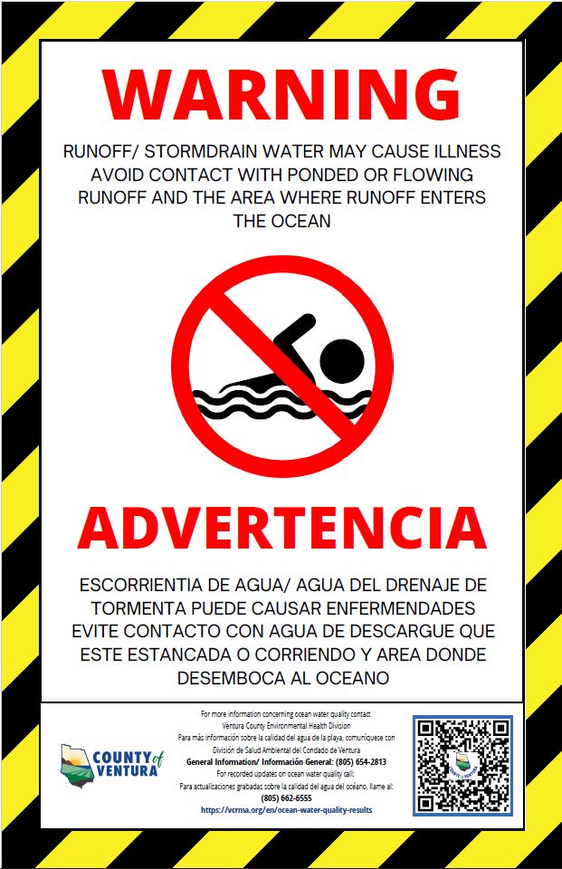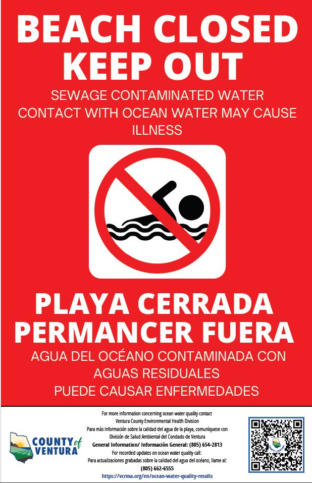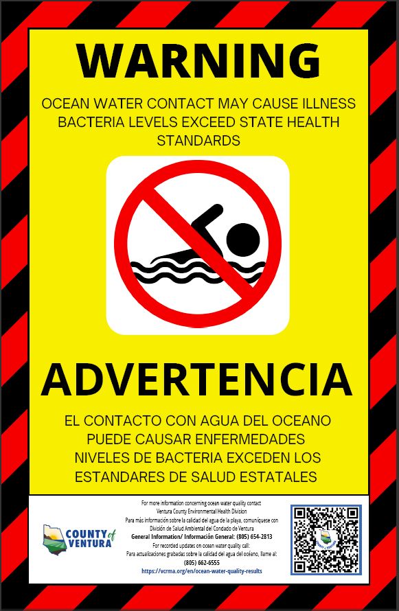 Sampling results indicate that water quality at all monitored beaches meets the State standards for bacteria. At this time there are no beaches in Ventura County posted with ocean water quality warning signs.
