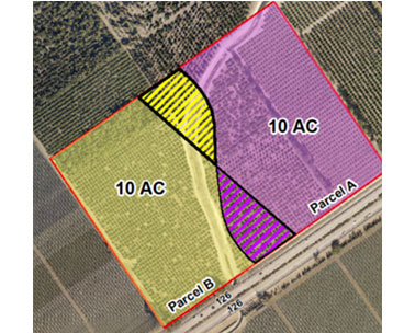 Parcel B remains at 10 acres and Parcel A and Parcel C become 40 acres