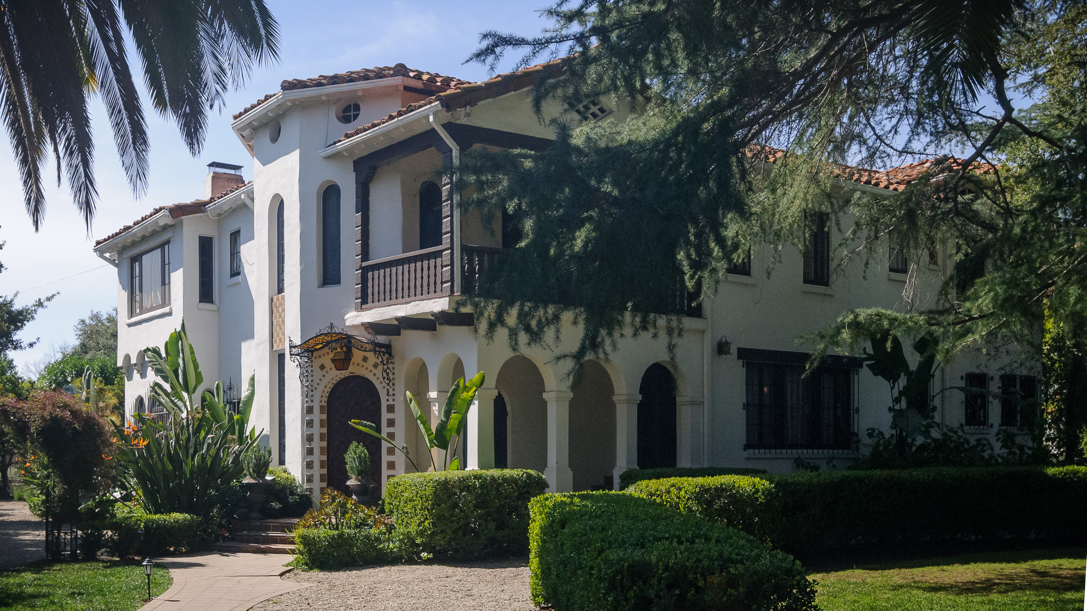 The Acacia Mansion is a large, intact, elaborate and finely detailed example of the Spanish Colonial Revival design that was popular in Southern California from about 1915 until World War II (Fisher, 2010). The Spanish Colonial design was utilized in both modest and elegant homes all throughout the region. The structures Moorish influence is also important as the Moorish period in Spanish architecture has left a lasting mark in the characteristics of the architecture throughout Spain itself. This residence is an example of the high-end use of the Spanish Colonial Revival design, displaying custom work that was designed to emulate residences in the country of Spain, with its unique blend of European and Moorish architecture. (Fisher, 2010)
