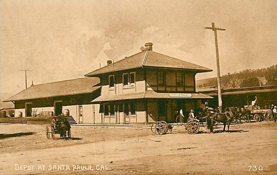 Historical photo of Santa Paula’s Southern Pacific Railroad Depot.