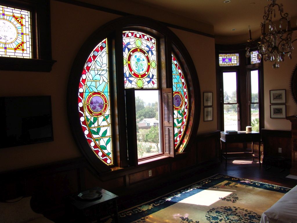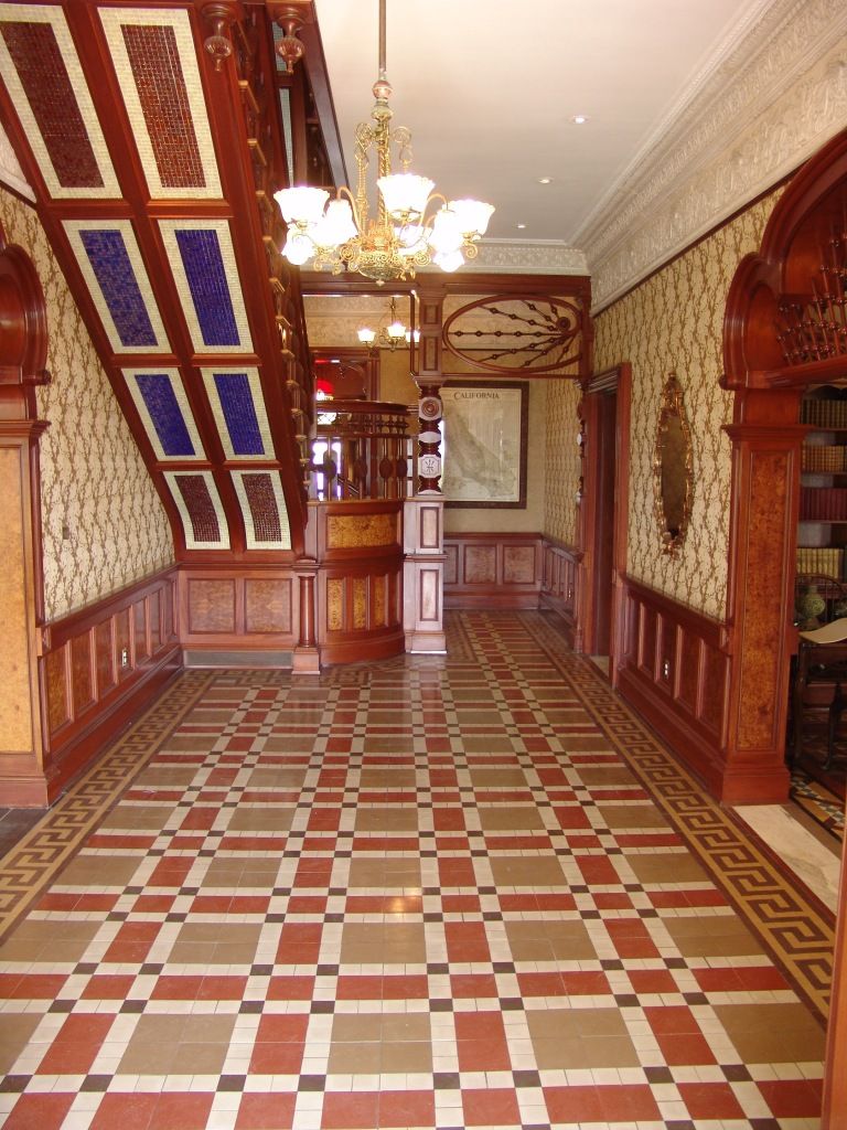 The mansion was originally constructed in 1890, with its design and construction attributed to Samuel and Joseph Cather Newsom. With more than 6,000 square feet, this home is a vision of Queen Anne Victorian architecture. As you enter the estate, the driveway is marked with two large English streetlamps cast for Queen Elizabeth II’s coronation. The ground floor is completely tiled in intricately patterned ceramic tiles, a coveted feature in Queen Anne buildings. Birch, walnut, oak, mahogany, teak, and Carpathian elm woods are used throughout the home, with the entire formal dining room paneled in fine-grain redwood. The mansion has five bedrooms and six bathrooms, each unique in style. Each bedroom has its own fireplace, with eight unique gas fireplaces in the home. A maritime motif is carried throughout the home, with one bathroom — aptly named the captain’s bathroom — featuring working brass and copper dials from an old steamship as the temperature and pressure controls in the shower. Throughout the home, one will also find intricate, handcrafted trimmings and wainscoting. Completing the windows throughout the home are stained glass and leaded glass detailing. From the outside, one can see a three-story Sespe stone tower that vies for prominence with a three-story, pointed wooden tower which is capped with a Phoenix finial, moon windows, recessed arched balconies, a profusion of wood on the surface in the form of various shingle patterns, a wraparound porch supported by stone on the lower portion and wooden columns on the upper part, and a wrought iron sea horse motif porch railing (Aldrich, n.d.).