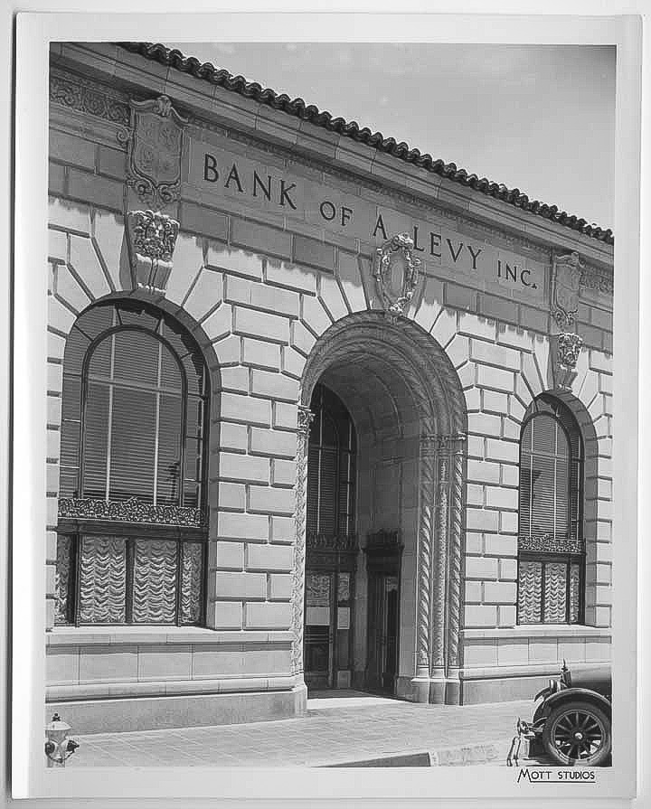 In 1905, the business was incorporated as a banking institution, Bank of A. Levy. Achille Levy considered his bank to be an integral part of the community; there were no foreclosures during his lifetime, even during the Great Depression in the 1930s. In 1927, with Achille’s son Joe as president, Bank of A. Levy moved to this Renaissance-style building on the corner of A and Fifth Streets. Many branches of the Bank of A. Levy were opened, but headquarters remained at Fifth and A Streets for many years.